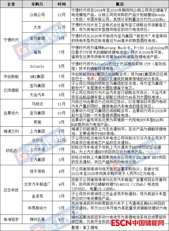 三、電池新勢力強(qiáng)勢崛起,斬獲車企大額訂單能力增強(qiáng)。