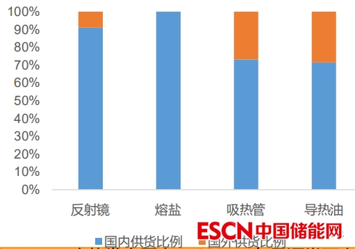 我國光熱發(fā)電示范項目關(guān)鍵部件材料國內(nèi)外供貨比例