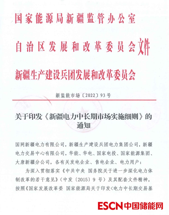 中國儲能網(wǎng)訊:近日,國家能源局新疆監(jiān)管辦公室印發(fā)《新疆電力中長期市場實施細(xì)則》。