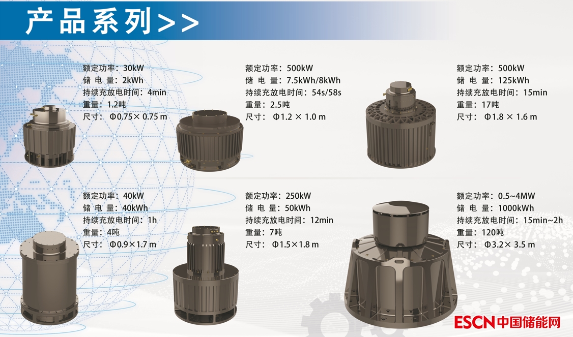 華馳動能五自由度電力級磁懸浮儲能飛輪產(chǎn)品包括: 4MW/1000kWh/15分鐘、500kW/1000kWh/2小時、500kW/125kWh/15分鐘、600kW/125kWh/12分鐘、500kW/50kWh/6分鐘、500kW/8kWh/58秒、500kW/7.5kWh/54秒、40kW/40kWh/1小時和30kW/2kWh/4分鐘等覆蓋秒級、分鐘級、小時級的全系列產(chǎn)品,綜合技術(shù)指標(biāo)達(dá)到國際領(lǐng)先水平。產(chǎn)品儲能時長由秒級跨越到15分鐘級和2小時級,引領(lǐng)全球飛輪技術(shù)革命。