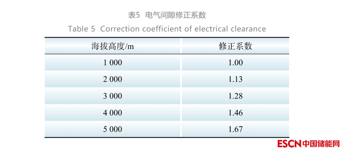 逆變器作為將光伏組件所發(fā)直流電轉(zhuǎn)化為電網(wǎng)所需交流電的核心設(shè)備,影響著整個光伏電站輸出功率與輸出電能質(zhì)量。大氣壓力、空氣密度和濕度隨海拔升高而逐漸降低,進而會導致電氣設(shè)備絕緣強度和散熱性能下降。海拔在5 000 m范圍內(nèi),每上升1 000 m,平均氣壓下降7.7~10.5 kPa,電氣設(shè)備外絕緣強度下降8%~13%,溫升增加3%~10%,環(huán)境溫度降低6 ℃;以海拔1000 m為基準,為保證電氣設(shè)備在高海拔地區(qū)安全使用,須對其電氣間隙按照表5所示系數(shù)進行修正[19]。