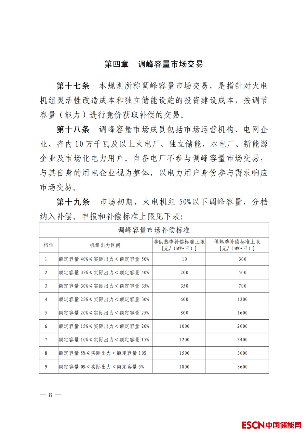 3.在火電企業(yè)計(jì)量出口內(nèi)建設(shè)的儲(chǔ)能設(shè)施,與火電機(jī)組視為整體,參與調(diào)峰容量市場(chǎng)、調(diào)頻輔助服務(wù)市場(chǎng)交易。
