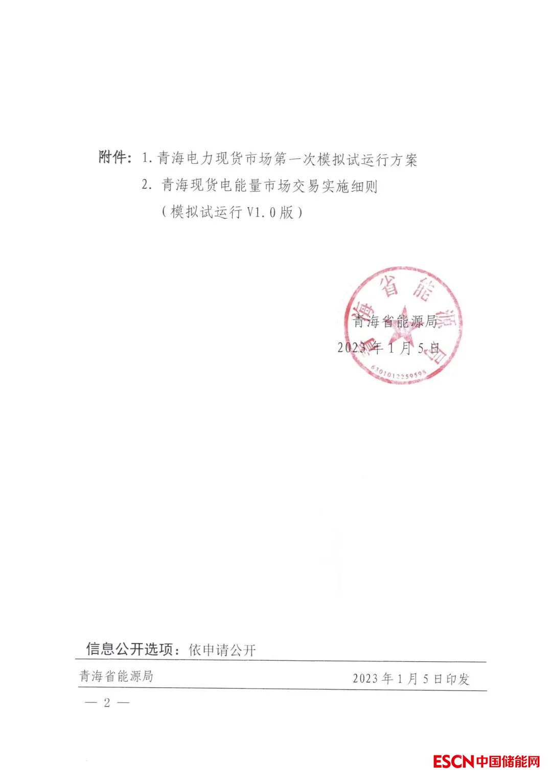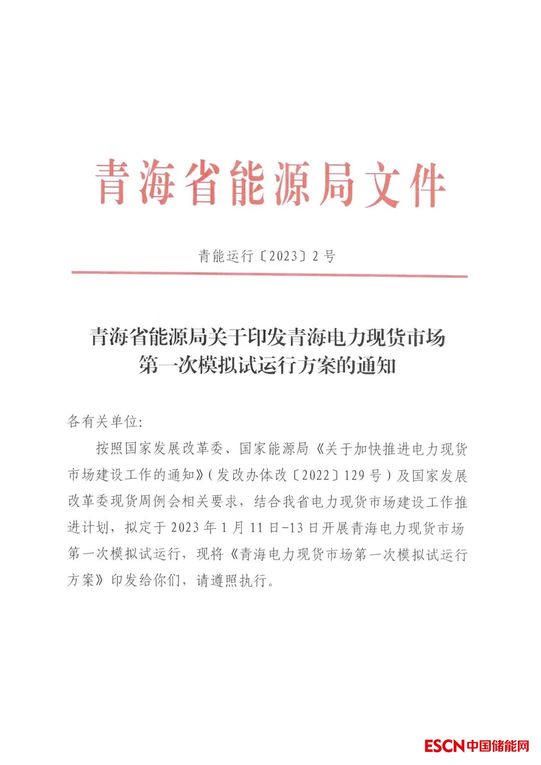 中國儲能網(wǎng)訊:1月5日,青海省能源局1月5日印發(fā)青海電力現(xiàn)貨市場第一次模擬試運行方案的通知(青能運行〔2023〕2號)。通知指出,擬定于2023年1月11日-13日開展青海電力現(xiàn)貨市場第一次模擬試運行。模擬試運行期間儲能電站不參與定價,接受電力現(xiàn)貨市場價格。