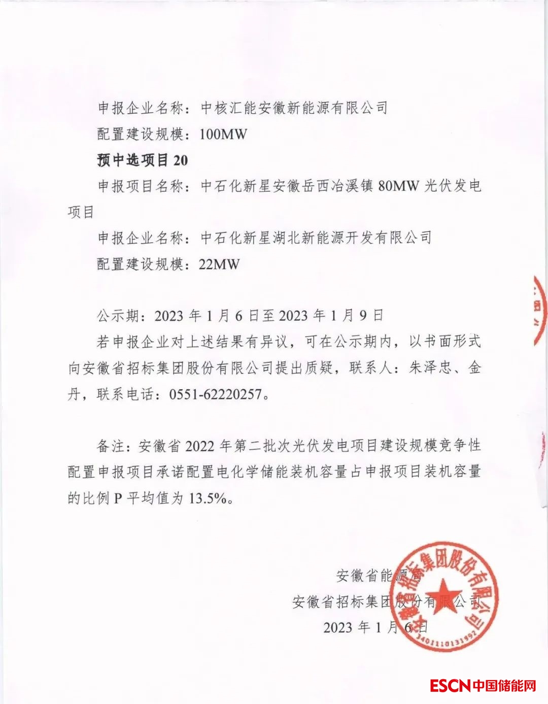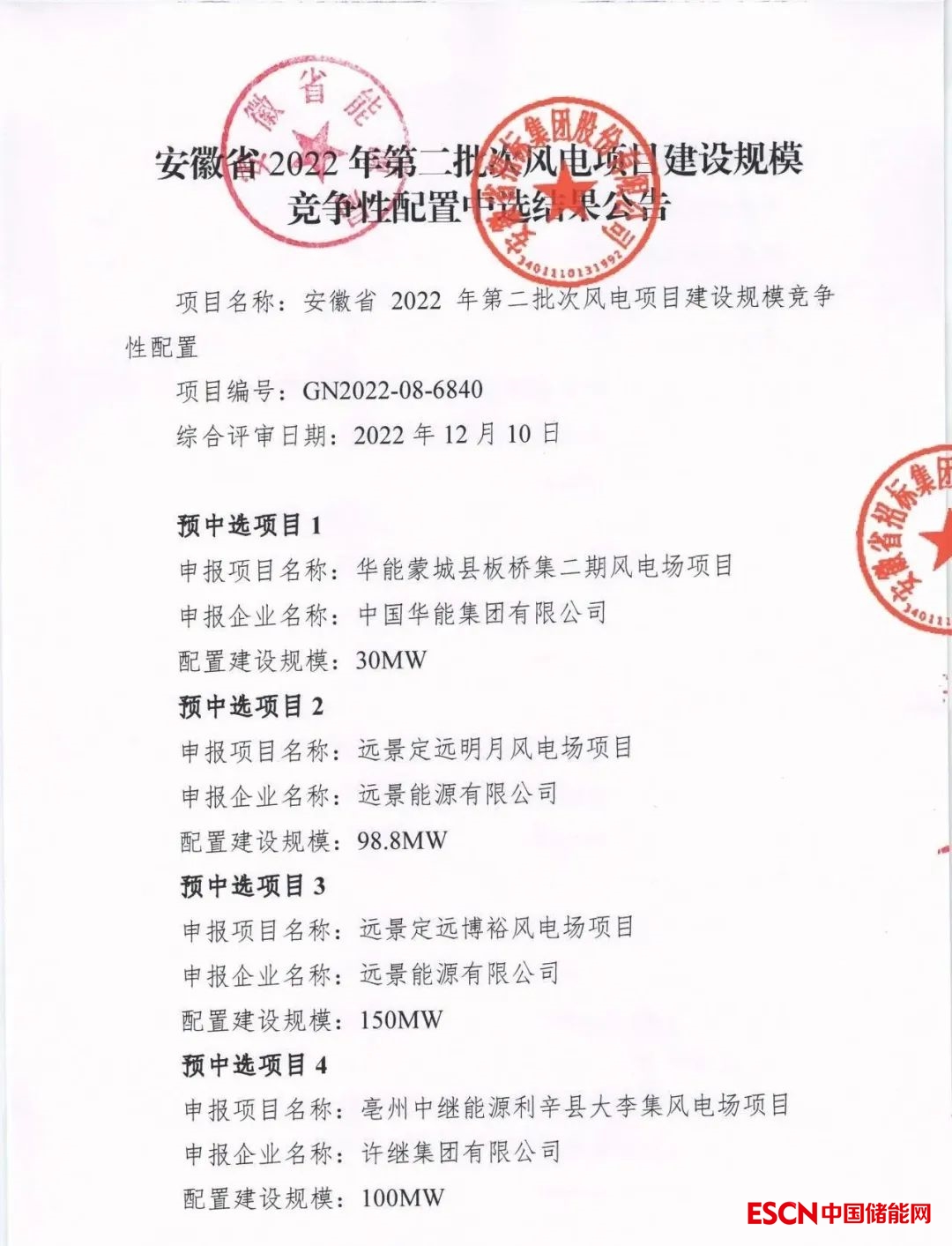 中國儲能網(wǎng)訊:1月6日,安徽省能源局公示了2022年第二批光伏、風(fēng)電項目競爭性配置優(yōu)選結(jié)果。