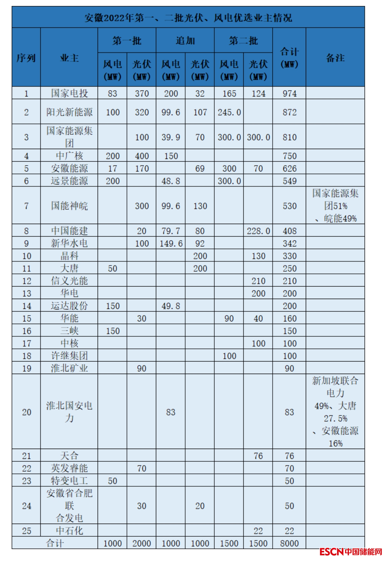 到目前為止,安徽省2022年先后下發(fā)8GW保障性風(fēng)電、光伏項目。其中,風(fēng)電3.5GW,光伏4.5GW。國電投領(lǐng)銜。