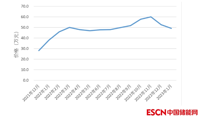 中國儲能網訊:近期,碳酸鋰等主要原材料價格持續(xù)下跌,以磷酸鐵鋰電池正極原材料電池級碳酸鋰價格為例,截至1月9日,電池級碳酸鋰價格報價約為49.2萬元/噸,已跌破50萬元/噸大關。