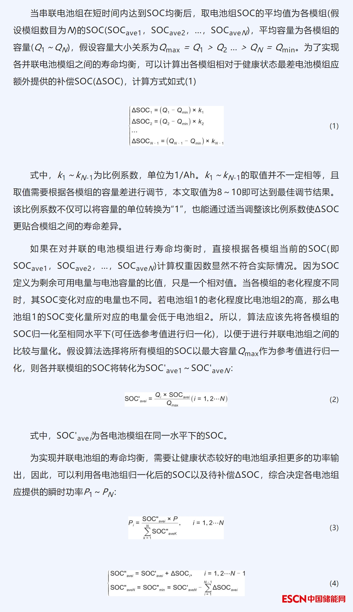 電池的內(nèi)阻、自放電率等特性都會(huì)有微小差異,具體表現(xiàn)為,串聯(lián)電池組會(huì)出現(xiàn)單體電壓分布不一致的現(xiàn)象,若不能及時(shí)均衡,可能引起特定電池單體過充、過放甚至是爆炸等危險(xiǎn)。而并聯(lián)電池組則直接表現(xiàn)為電流分布不一致,這將導(dǎo)致電池能量分布與容量衰減差異。并聯(lián)電池模組不同的容量衰減,會(huì)使某些模組提前到達(dá)截止壽命,破壞了多個(gè)并聯(lián)模組之間互為備份的關(guān)系,降低了系統(tǒng)整體的可靠性,且需要額外的人力去檢查,增加系統(tǒng)的維護(hù)成本。故需要對(duì)先串后并的并聯(lián)型方案進(jìn)行壽命均衡處理,使各電池單體的特性盡量接近。