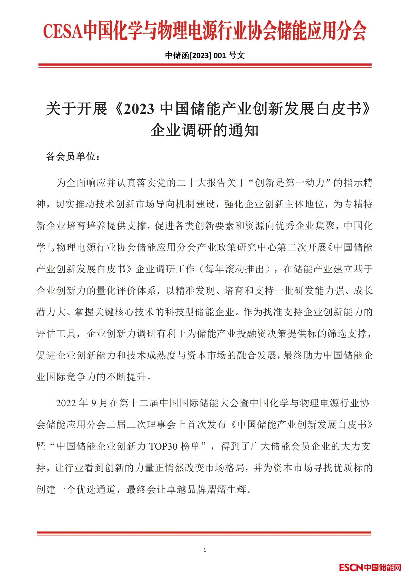 為全面響應(yīng)并認(rèn)真落實(shí)黨的二十大報(bào)告關(guān)于“創(chuàng)新是第一動(dòng)力”的指示精神,切實(shí)推動(dòng)技術(shù)創(chuàng)新市場(chǎng)導(dǎo)向機(jī)制建設(shè),強(qiáng)化企業(yè)創(chuàng)新主體地位,為專精特新企業(yè)培育培養(yǎng)提供支撐,促進(jìn)各類創(chuàng)新要素和資源向優(yōu)秀企業(yè)集聚,中國(guó)化學(xué)與物理電源行業(yè)協(xié)會(huì)儲(chǔ)能應(yīng)用分會(huì)產(chǎn)業(yè)政策研究中心第二次開(kāi)展《中國(guó)儲(chǔ)能產(chǎn)業(yè)創(chuàng)新發(fā)展白皮書(shū)》企業(yè)調(diào)研工作(每年滾動(dòng)推出),在儲(chǔ)能產(chǎn)業(yè)建立基于企業(yè)創(chuàng)新力的量化評(píng)價(jià)體系,以精準(zhǔn)發(fā)現(xiàn)、培育和支持一批研發(fā)能力強(qiáng)、成長(zhǎng)潛力大、掌握關(guān)鍵核心技術(shù)的科技型儲(chǔ)能企業(yè)。作為找準(zhǔn)支持企業(yè)創(chuàng)新能力的評(píng)估工具,企業(yè)創(chuàng)新力調(diào)研有利于為儲(chǔ)能產(chǎn)業(yè)投融資決策提供標(biāo)的篩選支撐,促進(jìn)企業(yè)創(chuàng)新能力和技術(shù)成熟度與資本市場(chǎng)的融合發(fā)展,最終助力中國(guó)儲(chǔ)能企業(yè)國(guó)際競(jìng)爭(zhēng)力的不斷提升。