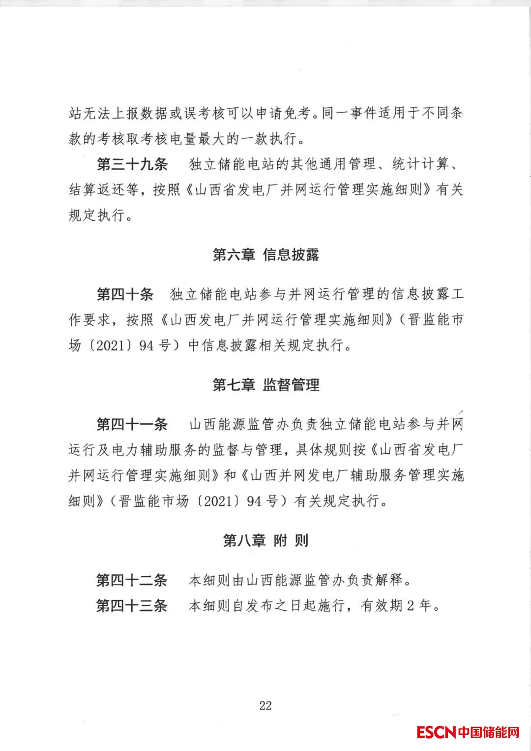 中國儲能網(wǎng)訊:近日,國家能源局山西監(jiān)管辦公室正式發(fā)布《山西獨立儲能電站并網(wǎng)運(yùn)行管理實施細(xì)則》,該細(xì)則對山西獨立儲能電站參與電力市場的調(diào)度管理、檢修管理、技術(shù)管理及考核的計量與結(jié)算趨于明朗,對投資獨立儲能電站的經(jīng)濟(jì)性提供了更好的測算模型。