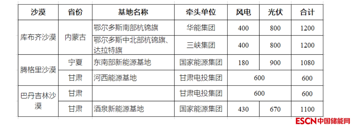 表:部分沙漠新能源大基地分配情況(單位:萬(wàn)千瓦)