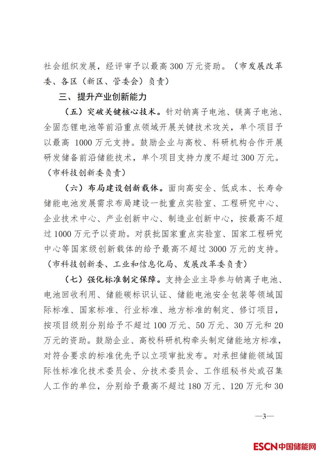 面向高安全、低成本、長壽命儲能電池發(fā)展需求布局建設(shè)一批重點實驗室、工程研究中心、企業(yè)技術(shù)中心、產(chǎn)業(yè)創(chuàng)新中心、制造業(yè)創(chuàng)新中心,按最高不超過1000萬元予以資助。