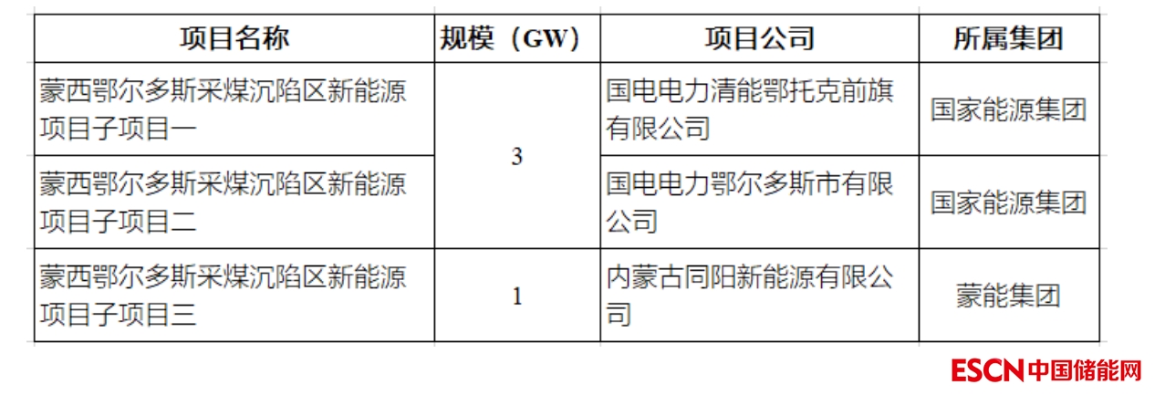 除了蒙西鄂爾多斯采煤沉陷區(qū)4GW新能源項目以外,根據(jù)之前報道,還有以下幾個項目。