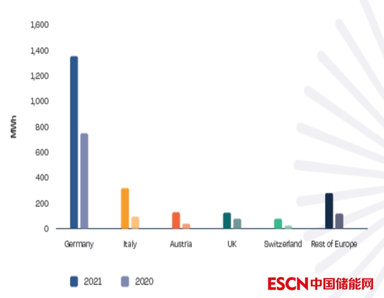 圖2.4 2020-2021年歐洲五大住宅電池儲能市場規(guī)模