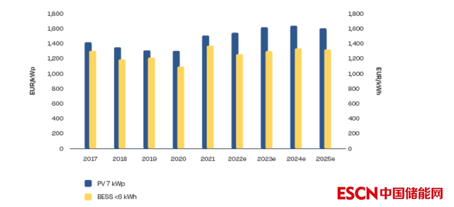 圖1.2 2017~2025年德國住宅太陽能和住宅儲能系統(tǒng)成本發(fā)展趨勢