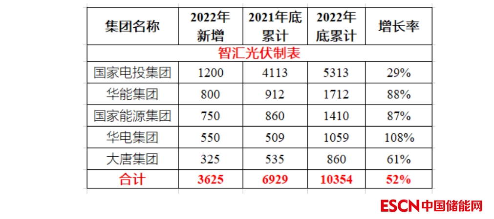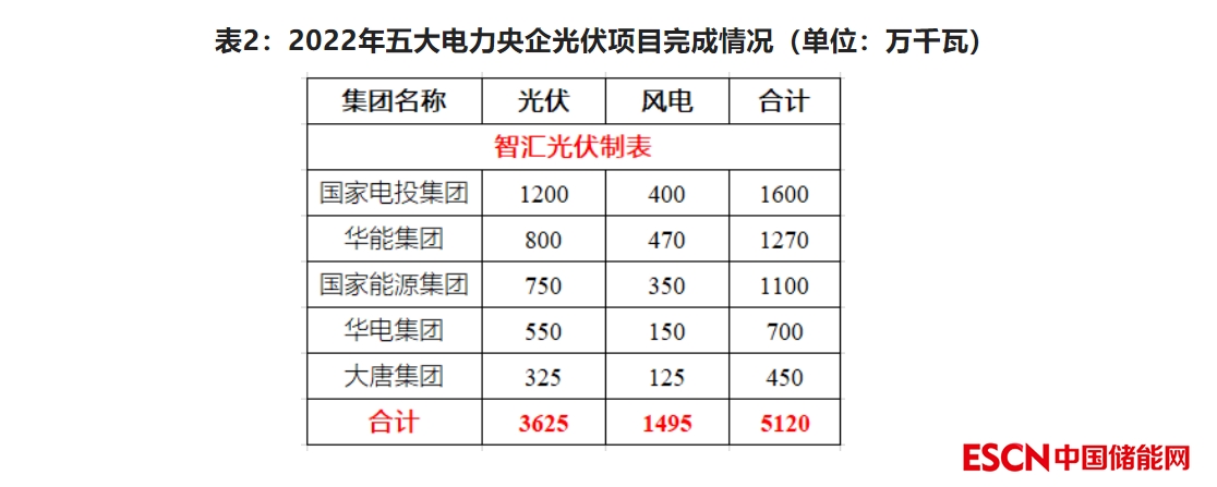 2022年,五大電力央企新能源新增規(guī)模為51.2GW,約占全國(guó)新能源新增總量的4成。其中:新增光伏項(xiàng)目36.25GW,新增風(fēng)電14.95GW。