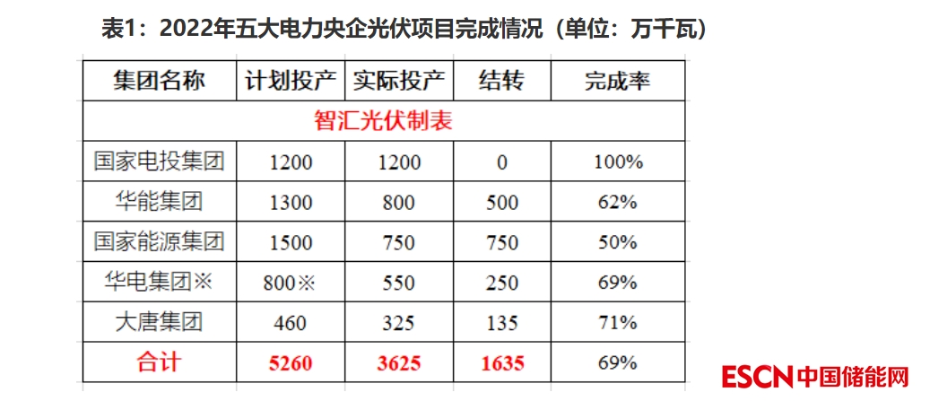 1)2022年除國(guó)家電投之外,光伏項(xiàng)目均未完成規(guī)劃的裝機(jī)目標(biāo),整體完成率約為七成,超過16GW項(xiàng)目結(jié)轉(zhuǎn)到2023年完成。