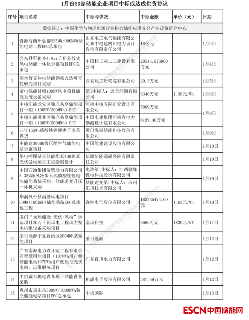 中國儲能網(wǎng)訊:2023年伊始,儲能產業(yè)喜迎開門紅!據(jù)中國儲能網(wǎng)不完全統(tǒng)計,2023年1月份共有30家儲能企業(yè)中標或達成供貨協(xié)議。