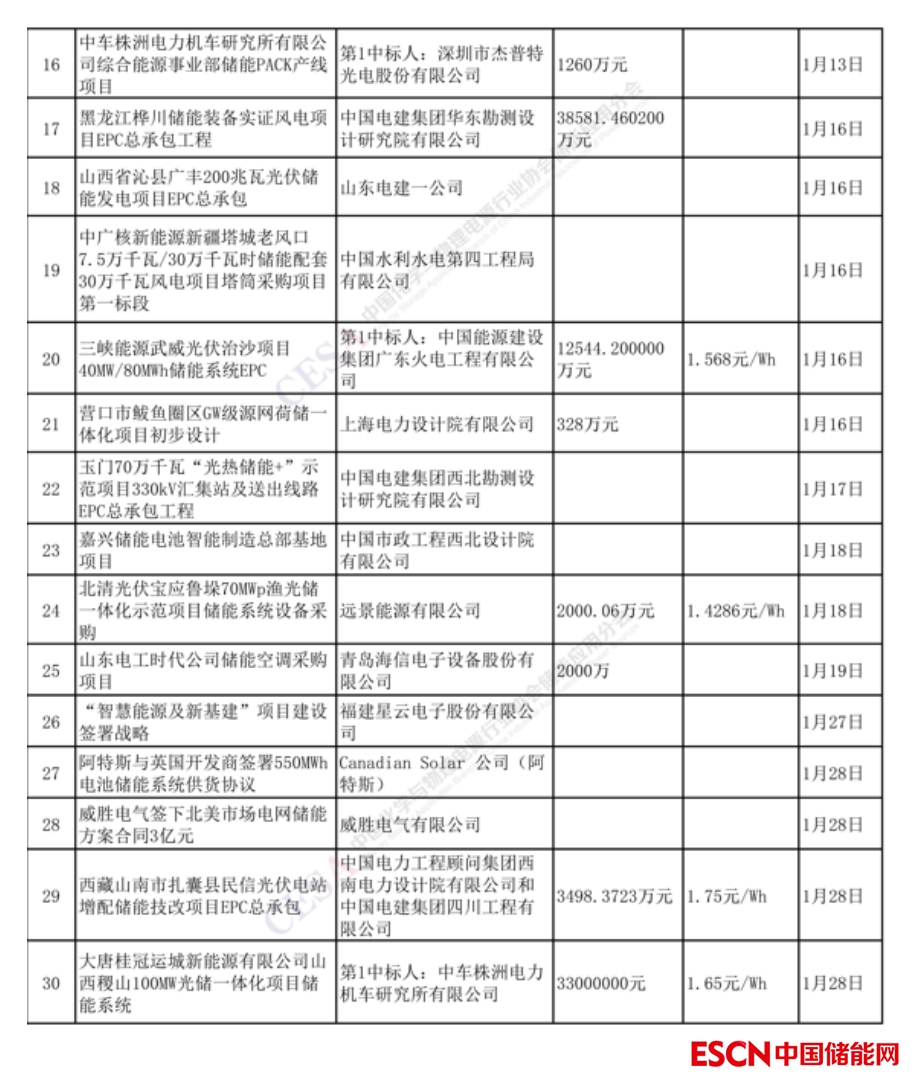 1月16日,三峽能源武威光伏治沙項目儲能系統(tǒng)EPC總承包中標候選人公示,招標內容包括但不限于初步設計至儲能系統(tǒng)整體竣工驗收的全部勘察設計。中標候選人第1名:中國能源建設集團廣東火電工程有限公司,投標報價:12544.200000萬元,投標單價1.568元/Wh。中標候選人第2名:中國電力工程顧問集團西南電力設計院有限公司,投標報價:13802.109686萬元,投標報價1.725元/Wh。中標候選人第3名:福建永福電力設計股份有限公司,投標報價:13981.650900萬元,投標報價1.7477元/Wh。