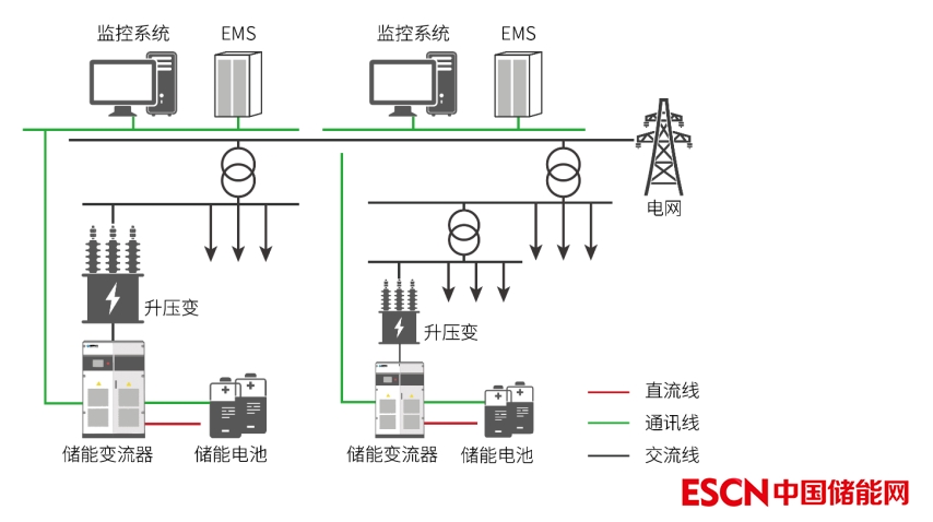 電網(wǎng)側儲能能夠布置在變電站等多個電網(wǎng)關鍵節(jié)點,能夠為多個用戶和電源服務,實現(xiàn)調(diào)峰、調(diào)頻控制,實時監(jiān)測負荷波動,快速響應電網(wǎng)調(diào)度,提高電網(wǎng)頻率穩(wěn)定性。