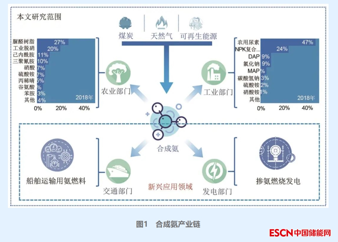 2021年9月,我國提出了2030年實現(xiàn)碳達(dá)峰,2060年實現(xiàn)碳中和的愿景。為實現(xiàn)雙碳目標(biāo),氫能與綠氨等清潔能源成為深度脫碳的重要路徑。氨(NH3)是現(xiàn)代社會中最為重要的化工產(chǎn)品之一,也是最早通過異相催化實現(xiàn)大規(guī)模工業(yè)化生產(chǎn)的化工產(chǎn)品。氨與人類社會的發(fā)展密切相關(guān),在過去的一百年中,氨在農(nóng)業(yè)領(lǐng)域的應(yīng)用是我國合成氨需求的最主要來源。得益于以氨為原料生產(chǎn)的氮肥的大規(guī)模應(yīng)用,全球糧食產(chǎn)量增長迅速,少部分氨作為原料應(yīng)用于合成纖維、炸藥與塑料等工業(yè)領(lǐng)域,但合成氨存在高耗能、高排放等問題。2020年,我國合成氨能源消耗為7198.3萬噸標(biāo)煤,約占全國能源消費總量的1.4%,直接排放的二氧化碳達(dá)2.19億噸,占化工行業(yè)排放總量的19.9%,占我國碳排放總量的2.2%。高排放主要是因為我國合成氨過程中原料氫的生產(chǎn)以煤為主。“雙碳”目標(biāo)下,以電解水制氫合成氨為代表的前端清潔替代與碳捕集和封存(CCS)為代表的后端處理等技術(shù)將成為合成氨脫碳路徑的重要抓手。