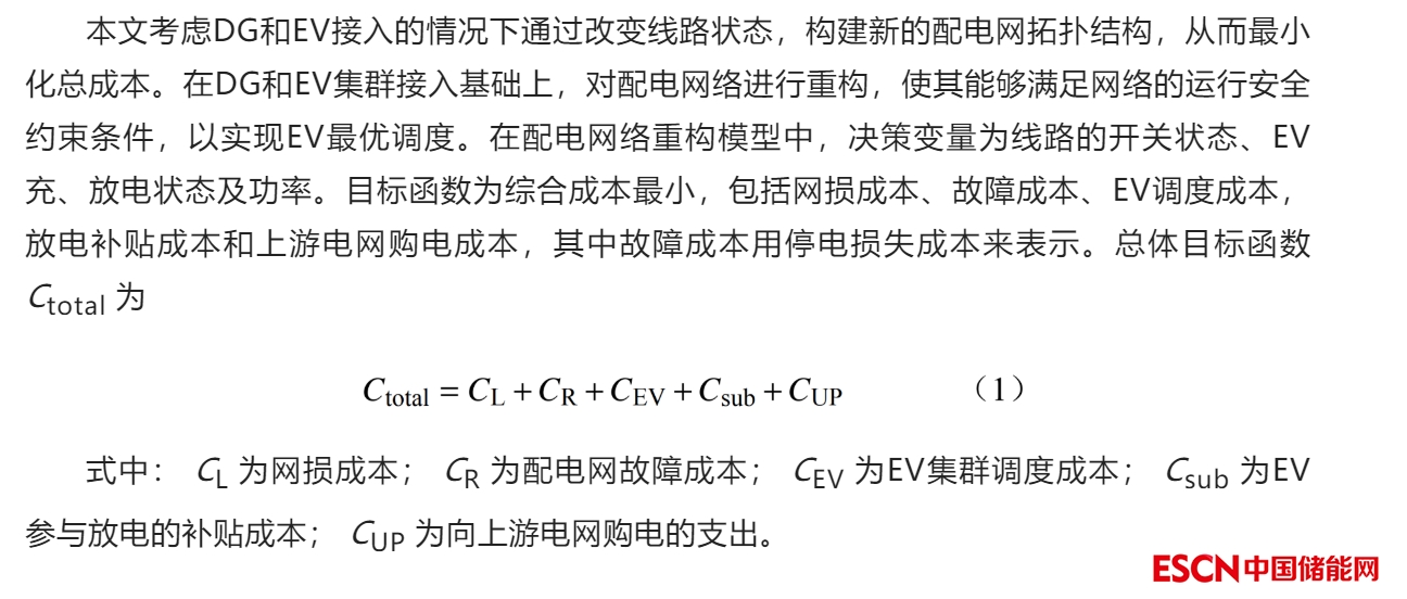 考慮分布式電源和電動(dòng)汽車集群調(diào)度的配電網(wǎng)絡(luò)重構(gòu)