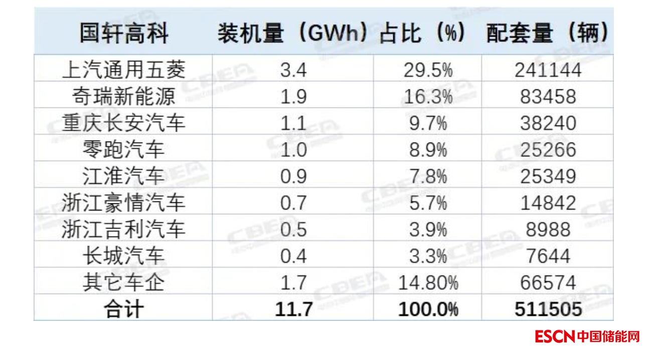 在乘用車(chē)市場(chǎng),國(guó)軒高科裝機(jī)量達(dá)11.7GWh,主要配套上汽通用五菱、奇瑞汽車(chē)、長(zhǎng)安汽車(chē)、長(zhǎng)安汽車(chē)、零跑汽車(chē)、江淮汽車(chē)、吉利汽車(chē)和長(zhǎng)城汽車(chē)等。