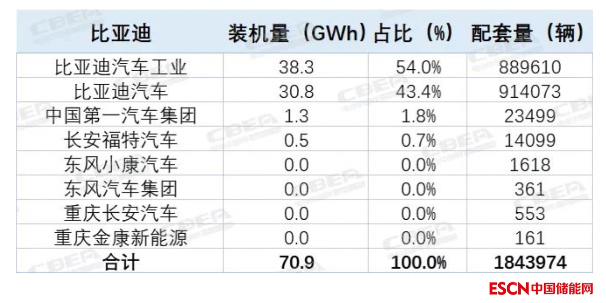 除了自產(chǎn)自供,中國(guó)一汽、長(zhǎng)安福特分別為比亞迪貢獻(xiàn)了1.3GWh和0.5GWh動(dòng)力電池裝機(jī)。