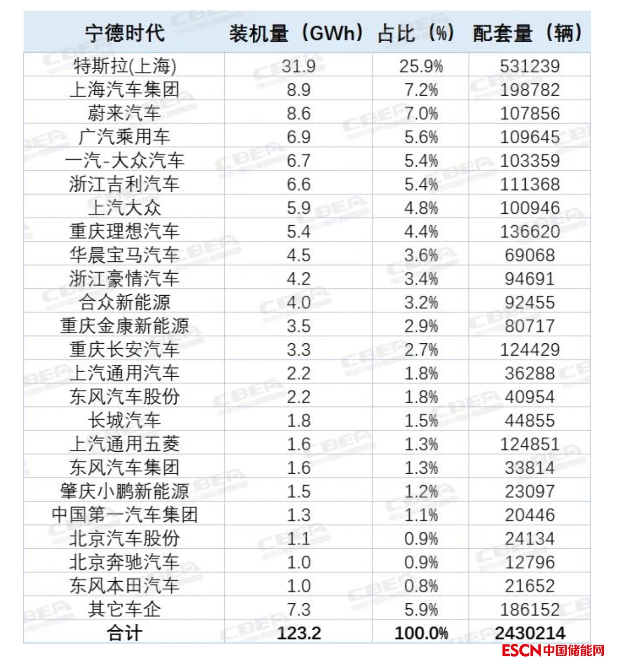 其中,在乘用車(chē)市場(chǎng)其裝機(jī)為123.2GWh。寧德時(shí)代乘用車(chē)客戶(hù)已經(jīng)覆蓋國(guó)內(nèi)主流車(chē)企,并且成為特斯拉在中國(guó)市場(chǎng)的核心供應(yīng)商。