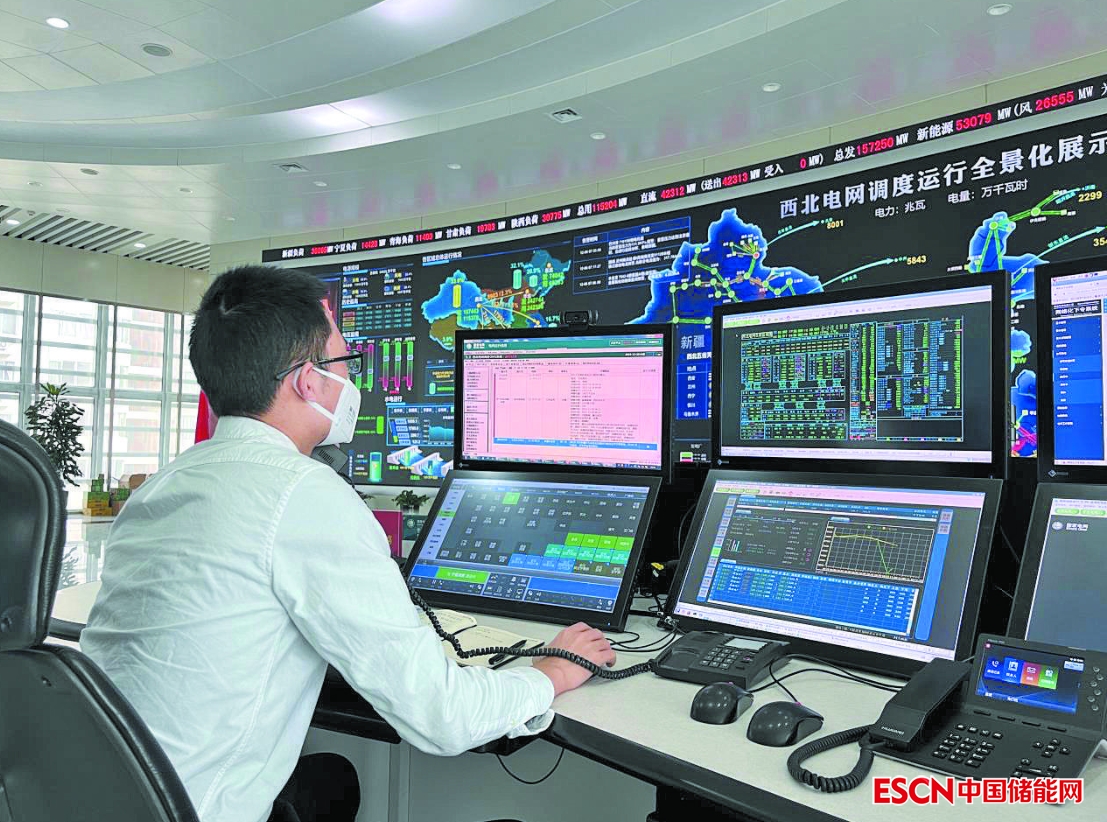 西北電力調(diào)度控制中心調(diào)度員監(jiān)測新能源發(fā)電機組出力。 國網(wǎng)西北分部供圖