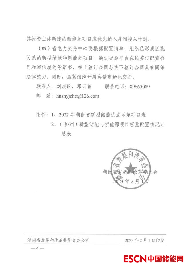 按照湖南發(fā)改委相關(guān)文件,新能源項(xiàng)目應(yīng)配置一定容量的新型儲能,于2022年12月底前,2023年6月底前全容量并網(wǎng)運(yùn)行的新型儲能試點(diǎn)項(xiàng)目分別按其裝機(jī)容量的1.5倍、1.3倍計(jì)算所配新能源容量。