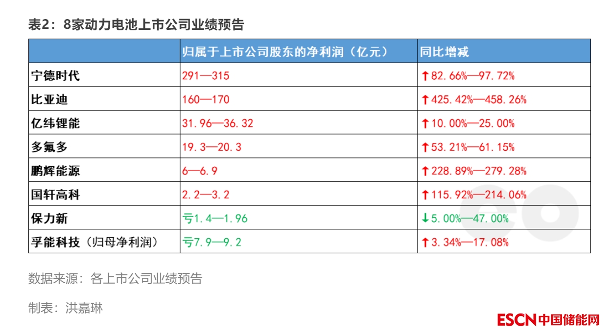 寧德時代歸屬于股東凈利潤預計為291億元—315億元,在8家上市公司中領先。該公司表示,在國內外新能源行業(yè)快速發(fā)展、動力電池及儲能產業(yè)市場持續(xù)增長的背景下,該公司產品銷量明顯提升,實現(xiàn)了盈利規(guī)模的快速增長。