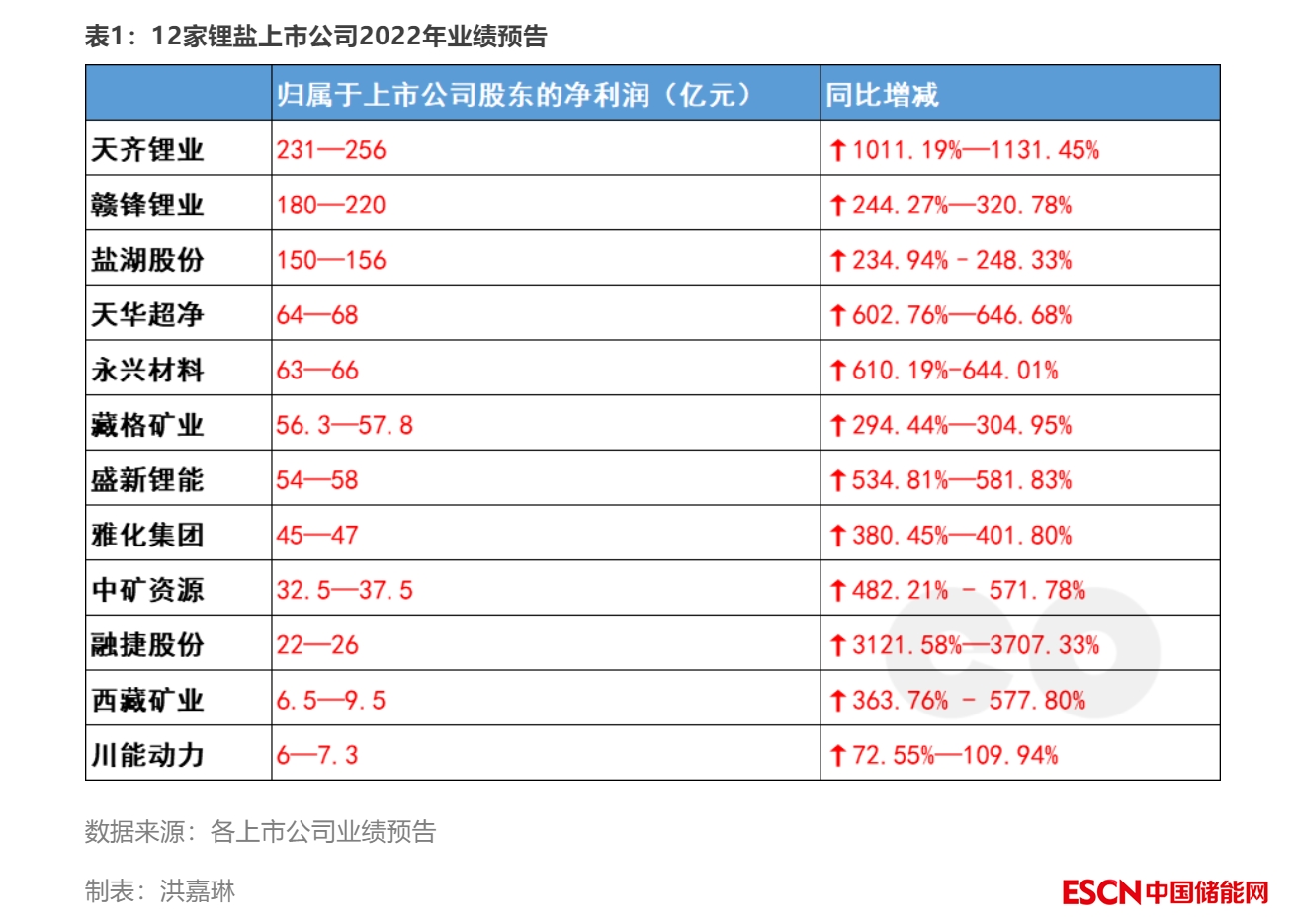 受新能源汽車市場景氣、動力電池市場對鋰鹽需求增長、鋰產品售價上漲等因素影響,多家鋰鹽上市公司預計盈利且利潤有較大幅度增長,歸屬于股東的凈利潤總額預計可超過1000億元。