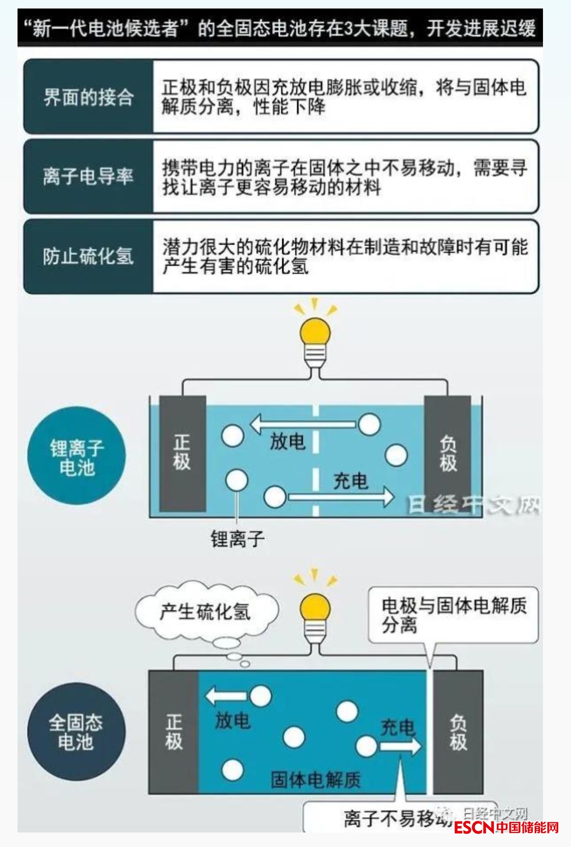 不過(guò),《日經(jīng)中文網(wǎng)》在一篇最新的文章中最新指出,全固態(tài)電池最初被期待在2020年代前半期就搭載于純電動(dòng)汽車(chē),但開(kāi)發(fā)速度緩慢,目前看來(lái),其量產(chǎn)仍然需要邁過(guò)三道難關(guān)。