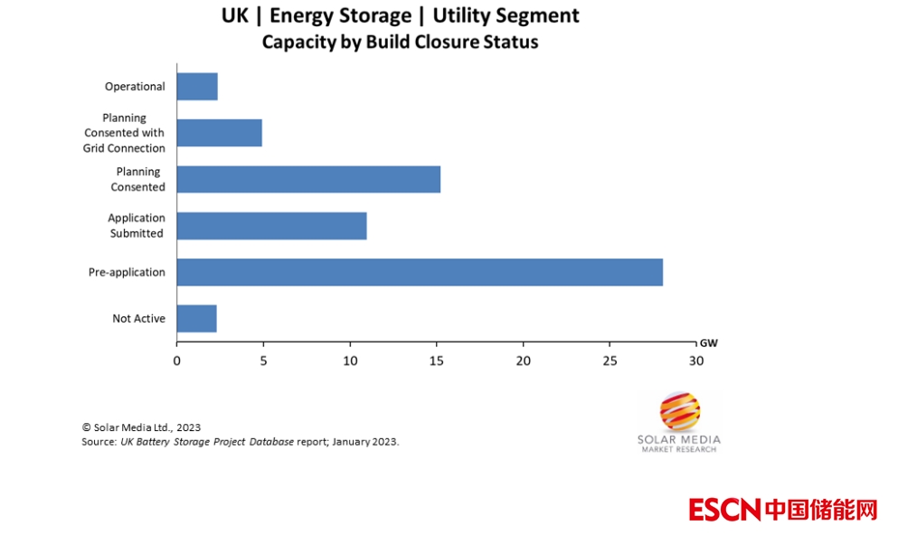 ?英國(guó)已經(jīng)批準(zhǔn)計(jì)劃部署20.2GW儲(chǔ)能項(xiàng)目的規(guī)劃,包括33個(gè)100MW或以上的電池儲(chǔ)能項(xiàng)目,這意味著這些儲(chǔ)能項(xiàng)目不太可能受到未來(lái)規(guī)劃變化的影響。這些儲(chǔ)能項(xiàng)目預(yù)計(jì)將在未來(lái)3~4年內(nèi)完成部署。