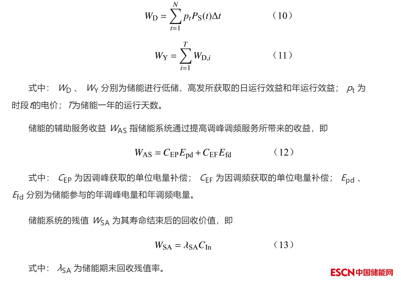 儲能的自身價值收益分為運行效益、輔助服務(wù)效益以及期末回收殘值。儲能的運行效益主要指儲能系統(tǒng)利用電價差進行低儲高發(fā)所獲取的收益,即