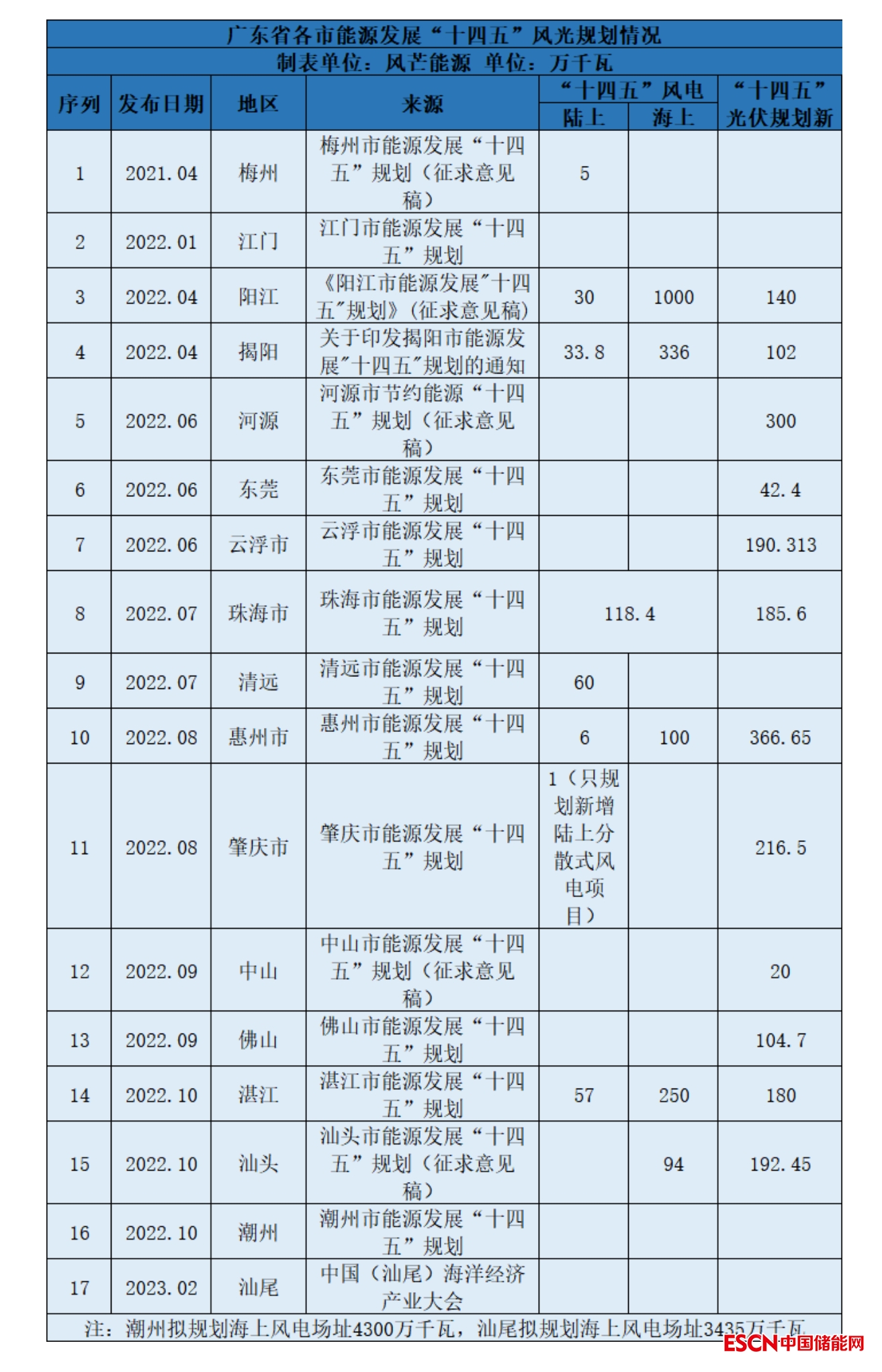 風芒能源根據(jù)公開信息不完全統(tǒng)計,截至目前,廣東共有17個市發(fā)布了“十四五”能源發(fā)展規(guī)劃。根據(jù)梳理,“十四五”期間,僅潮州、汕尾兩市規(guī)劃海上風電7700萬千瓦,廣東17個市共新增風電裝機容量超2000萬千瓦。