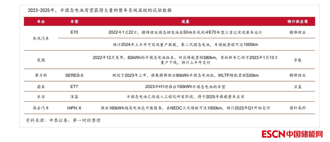 公開(kāi)資料顯示,2022年以來(lái)一批領(lǐng)先的半固態(tài)電池企業(yè)先后發(fā)布車(chē)規(guī)級(jí)電池,隨后蔚來(lái)發(fā)布ET7、東風(fēng)發(fā)布E70、嵐圖發(fā)布追風(fēng)等搭載半固態(tài)電池的車(chē)型,市場(chǎng)普遍預(yù)計(jì)半固態(tài)電池的商業(yè)化轉(zhuǎn)折點(diǎn)會(huì)在2024~2025年。