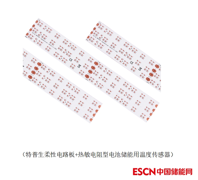 2、如何檢測電池儲能內(nèi)部的化學(xué)熱:電池內(nèi)部化學(xué)物質(zhì)電解質(zhì)反應(yīng)也會(huì)產(chǎn)生大量的熱。對這熱的檢測只能將傳感器貼附與電芯表面,才能達(dá)到最直接快速的效果。這里空間狹小,為此,特普生設(shè)計(jì)了一種利用柔性電路板+熱敏電阻的傳感器結(jié)構(gòu),可實(shí)現(xiàn)多點(diǎn)大范圍溫度監(jiān)控,如下圖所示。