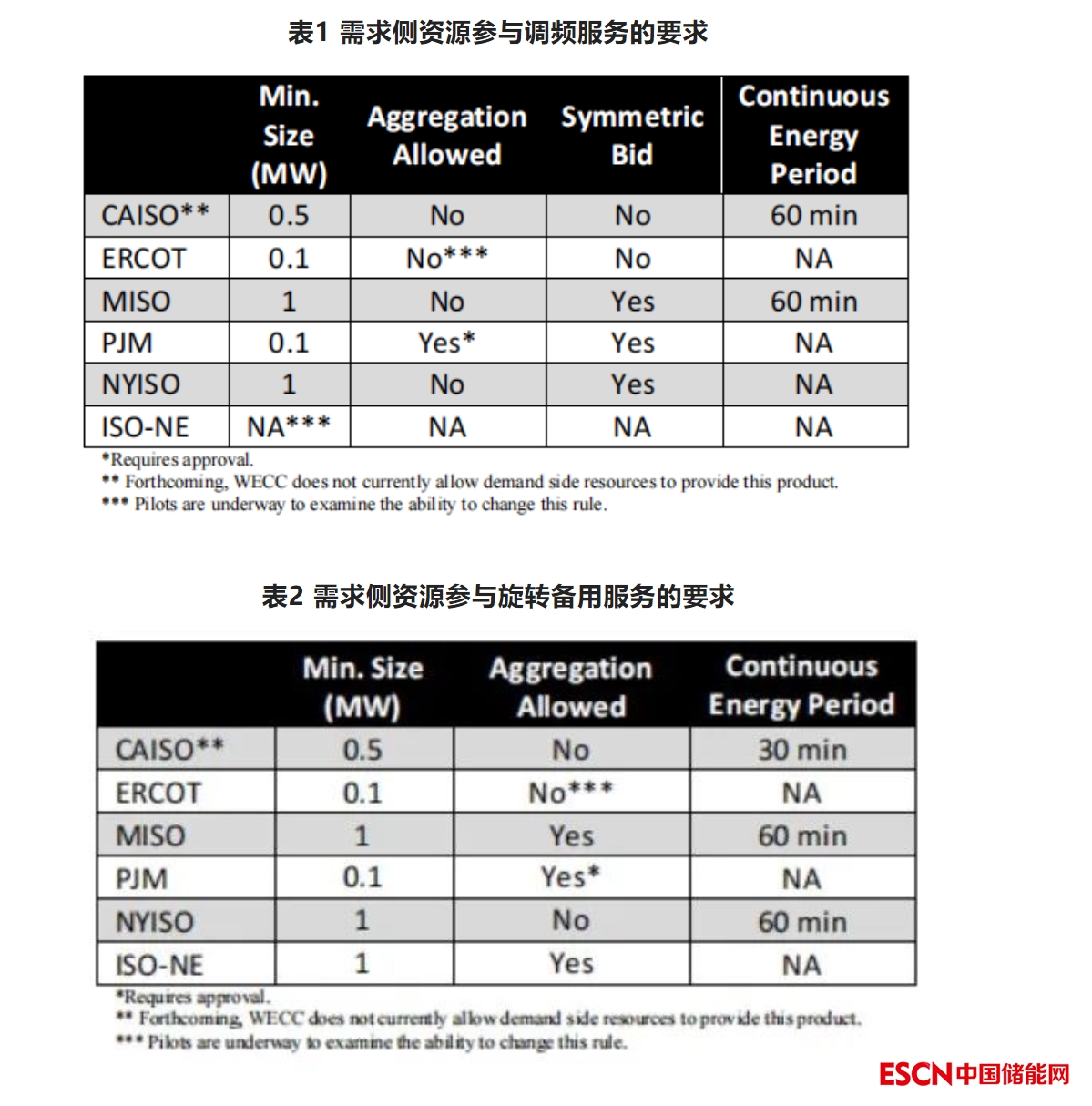 輔助服務產(chǎn)品的定義,以及需求響應資源參與輔助服務市場的規(guī)則在所有ISO/RTO并不一致。在本節(jié)中,將比較美國6個市場(即加利福尼亞ISO(CAISO)、德克薩斯州電力可靠性委員會(ERCOT)、中西部ISO(MISO)、賓夕法尼亞-新澤西-馬里蘭州互連電網(wǎng)(PJM)、紐約ISO(NYISO)和新英格蘭ISO(ISO-NE))的有關規(guī)則。