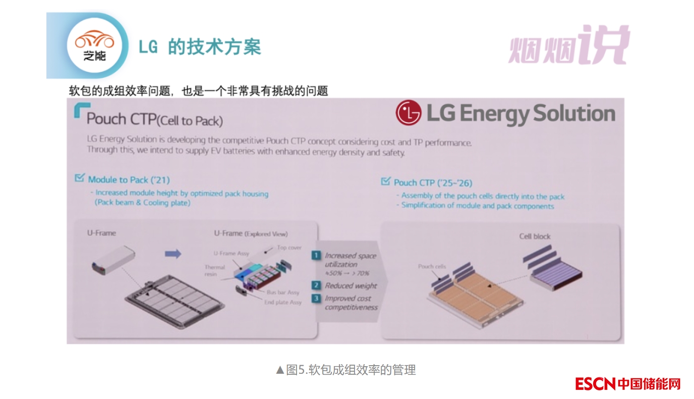 軟包的成組效率問題,也是一個非常具有挑戰(zhàn)的問題,LG的兩種方案,一個是Module to Pack,一個是軟包的CTP設(shè)計。