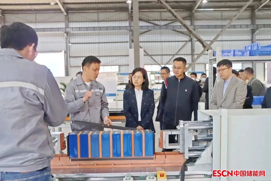 投產(chǎn)儀式結(jié)束后,與會(huì)人員到辦公區(qū)及生產(chǎn)線進(jìn)行觀摩,參觀了模組、插箱、電池簇等生產(chǎn)設(shè)備及儲(chǔ)能系統(tǒng)集裝箱產(chǎn)品。