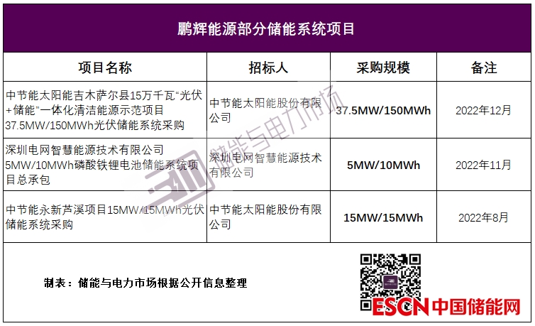 作為一家成立20余年的老牌上市儲(chǔ)能企業(yè),鵬輝發(fā)揮在電池產(chǎn)業(yè)鏈上廣泛的生態(tài)合作伙伴實(shí)現(xiàn)了向產(chǎn)業(yè)鏈下游的拓展。鵬輝通過(guò)與天合合資建廠(chǎng)、與中節(jié)能等客戶(hù)合作,參與儲(chǔ)能系統(tǒng)的招投標(biāo),陸續(xù)中標(biāo)儲(chǔ)能系統(tǒng)采購(gòu)項(xiàng)目。