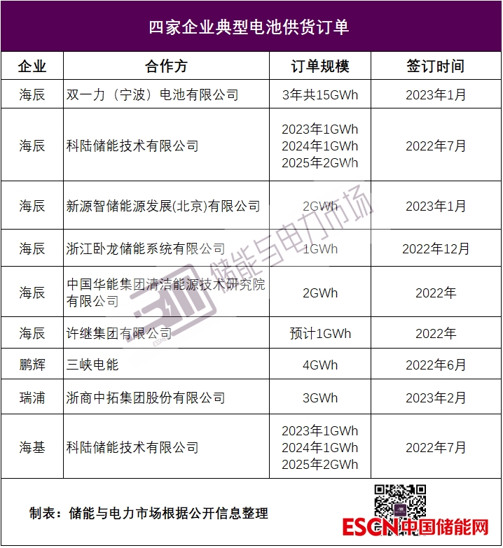 海辰2022年訂單量超4.7GWh,出貨量達(dá)5GWh,僅2023年1-2月的訂單量就已超過(guò)20GWh。除了與許繼、南網(wǎng)電力科技等達(dá)成了多次合作外,海辰也與新源智儲(chǔ)、雙一力、宜春科陸等新建立了合作關(guān)系。