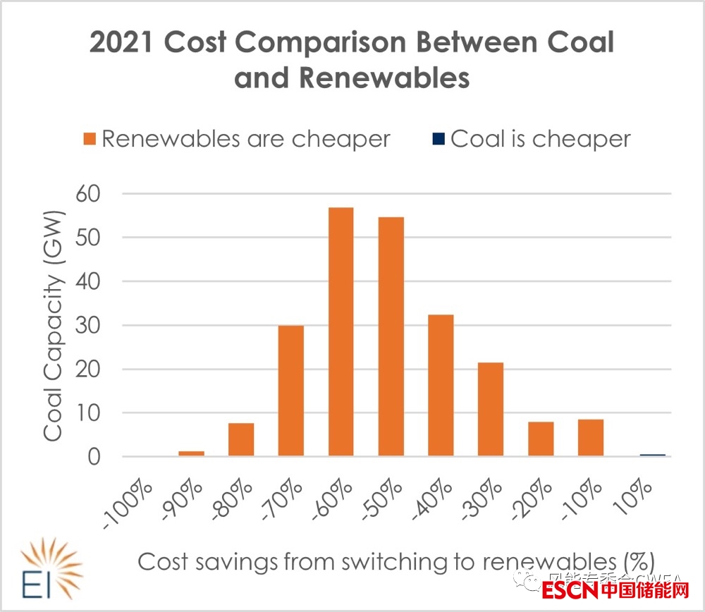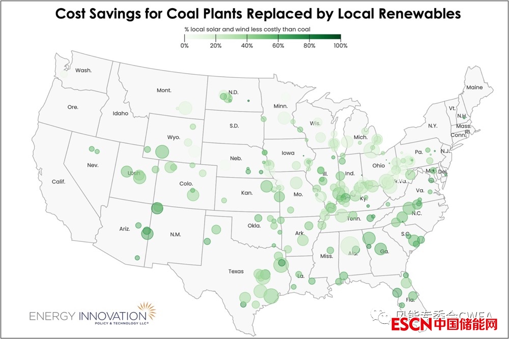 這項(xiàng)新的研究將2022年夏天美國(guó)《通脹削減法案》中為可再生能源提供的3700億美元的稅收減免和其他支持考慮進(jìn)去,將美國(guó)煤電廠的燃料、運(yùn)行成本和維護(hù)成本與同一地區(qū)新建公用事業(yè)規(guī)模的太陽(yáng)能或風(fēng)能電站進(jìn)行了比較。