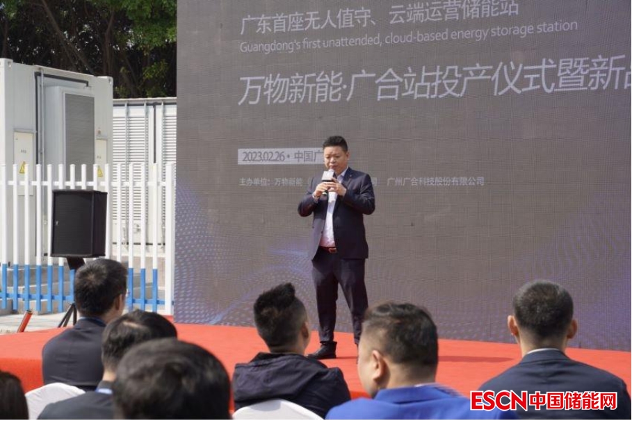 中國儲能網(wǎng)訊:日前,廣東首座新型無人值守、云端運營儲能站——萬物新能廣合站(4MW/9.6MWh)圓滿完成系統(tǒng)調(diào)試,順利合閘并網(wǎng)。2023年2月26日,廣合科技園區(qū)項目現(xiàn)場舉行了投運儀式,廣州廣合科技股份有限公司設(shè)施部總經(jīng)理黃楊、廣東申菱環(huán)境系統(tǒng)股份有限公司總裁潘展華、廣東產(chǎn)融商業(yè)發(fā)展有限公司董事長唐凌波等蒞臨現(xiàn)場。
