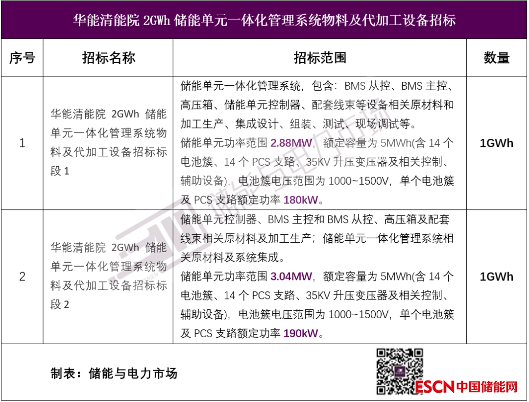 中國儲能網(wǎng)訊:近日,華能清能院發(fā)布2GWh儲能單元一體化管理系統(tǒng)物料及代加工設(shè)備招標(biāo)公告。投標(biāo)人需負(fù)責(zé)提供儲能單元一體化管理系統(tǒng)。在此之前,2022年2月,華能清能院曾完成一次電芯采購招標(biāo),共計2GWh的儲能電芯由廈門海辰儲能科技股份有限公司提供。