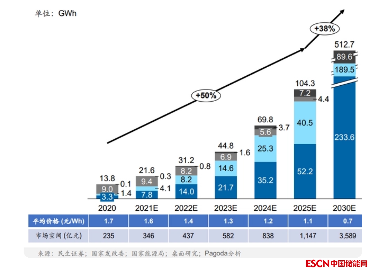 國家能源局數(shù)據(jù)顯示,中國新型儲能裝機規(guī)模預計復合年均增長率為51%,抽水蓄能裝機規(guī)模復合年均增長率預計為13%。而儲能建設(shè)的大提速,一方面來源于雙碳目標,另一方面則在于政策、技術(shù)、資本的多方合力。