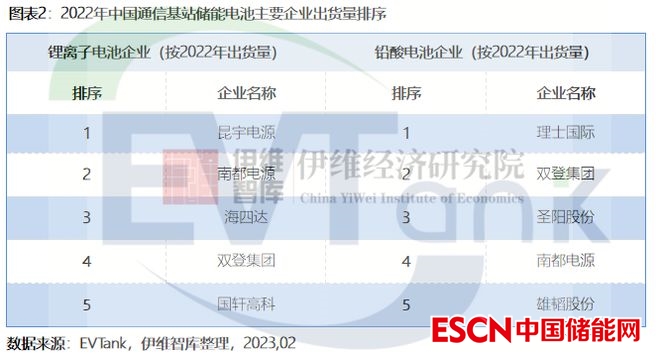 從通信基站儲能用鉛酸電池來看,目前的主要參與者包括理士國際,南都電源、雄韜股份、雙登集團、圣陽股份等,在通信基站儲能用鋰離子電池領(lǐng)域,除了之前的鉛酸電池企業(yè)轉(zhuǎn)型提供基站用鋰離子電池產(chǎn)品之外,包括昆宇電源、海四達、國軒高科、寧德時代、比亞迪、億緯鋰能和ATL等專注于鋰離子電池企業(yè)也在積極開拓通信基站儲能領(lǐng)域。EVTank數(shù)據(jù)顯示,2022年理士國際和昆宇電源分別在通信基站儲能用鉛酸電池和鋰離子電池領(lǐng)域排名第一。