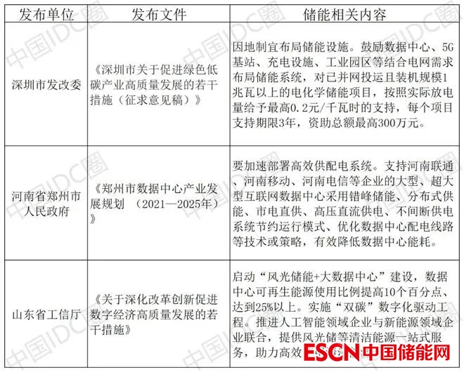 圖:部分?jǐn)?shù)據(jù)中心與儲能結(jié)合發(fā)展政策整理