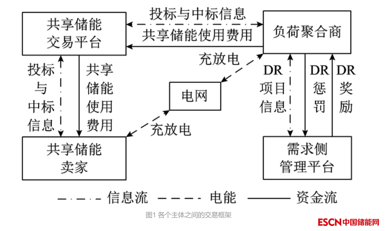 目前,用戶(hù)側(cè)共享儲(chǔ)能商業(yè)模式較為單一,共享儲(chǔ)能研究大多對(duì)共享儲(chǔ)能容量權(quán)或者功率權(quán)分別進(jìn)行拍賣(mài)。換而言之,共享儲(chǔ)能銷(xiāo)售方向購(gòu)買(mǎi)方出售的是儲(chǔ)能容量使用權(quán)或是儲(chǔ)能充放電能力,對(duì)應(yīng)按容量或者按充/放電量計(jì)費(fèi)。在此單一模式下,由于儲(chǔ)能電池容量與儲(chǔ)能變流器功率具有耦合關(guān)系,易將造成資源浪費(fèi)。且當(dāng)前共享儲(chǔ)能商業(yè)模式下,共享儲(chǔ)能使用權(quán)常以1小時(shí)為最小出售時(shí)長(zhǎng),而負(fù)荷聚合商參與需求響應(yīng)通常以10分鐘或15分鐘為最小響應(yīng)單位,造成購(gòu)買(mǎi)共享儲(chǔ)能使用權(quán)與參與需求響應(yīng)時(shí)間尺度不匹配。